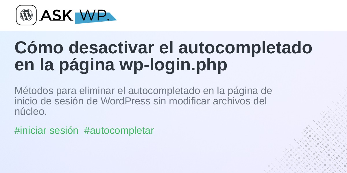 Cómo desactivar el autocompletado en la página wp-login.php