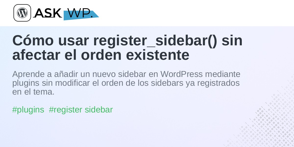 ¿Cómo se registra un sidebar en un plugin sin afectar los sidebars previamente registrados? (El orden de registro de los sidebars, más que el ID asignado, determina los datos del sidebar).
