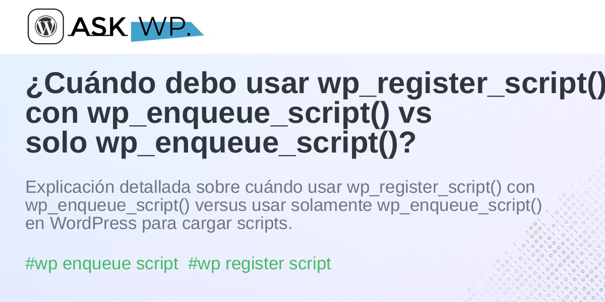 ¿Cuándo debo usar wp_register_script() con wp_enqueue_script() vs solo wp_enqueue_script()?