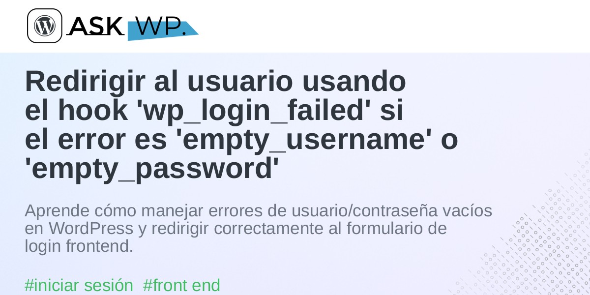 Redirigir al usuario usando el hook 'wp_login_failed' si el error es 'empty_username' o 'empty_password'