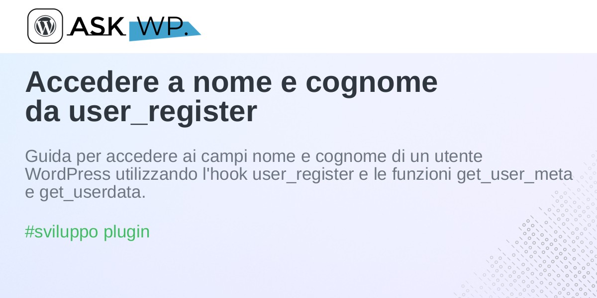 qualcuno sa come recuperare first_name e last_name da $user_id per passarli a una funzione che si attiva sull'hook user_register?