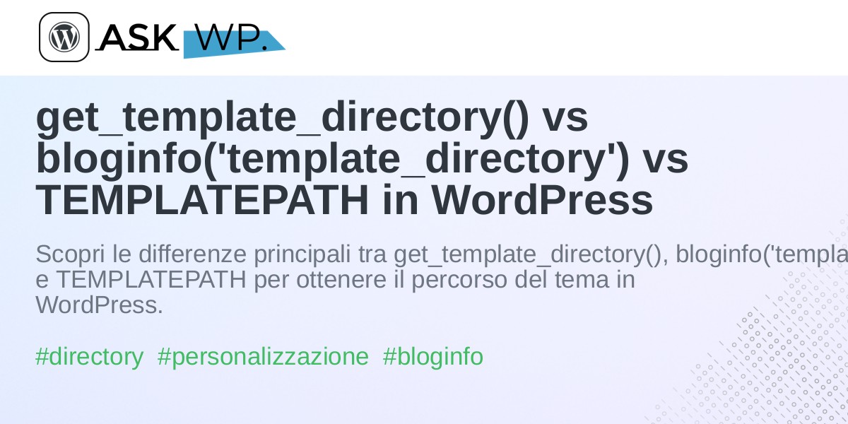 Nota anche: TEMPLATEPATH e STYLESHEETPATH sono destinati alla deprecazione, quindi è meglio sostituirli ora con get_template_directory() e get_stylesheet_directory(), rispettivamente.