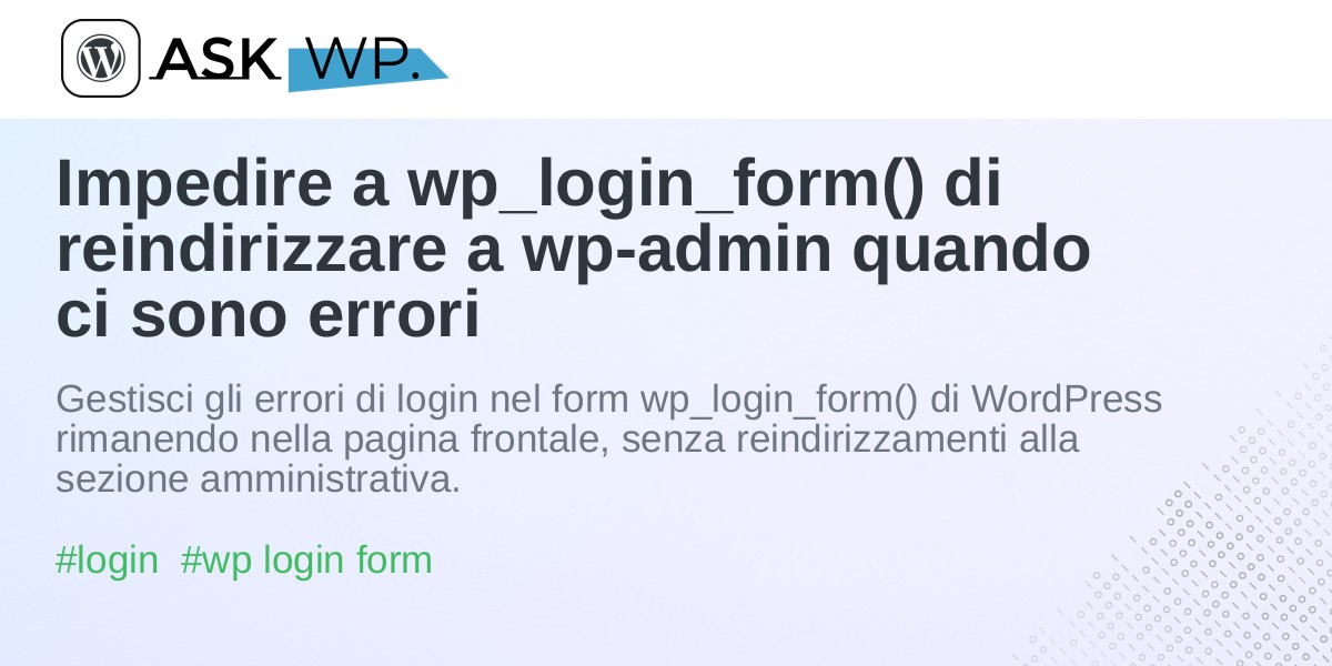 Impedire a wp_login_form() di reindirizzare a wp-admin quando ci sono errori