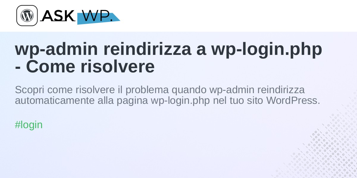 wp-admin reindirizza a wp-login.php - Come risolvere