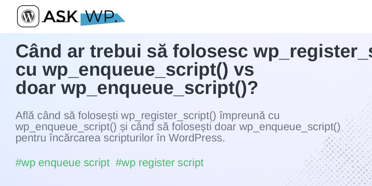 Când ar trebui să folosesc wp_register_script() cu wp_enqueue_script() vs doar wp_enqueue_script()?