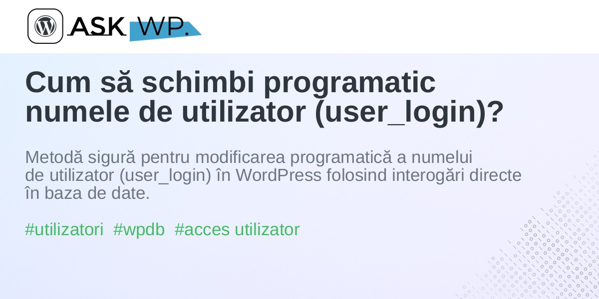 Cum să schimbi programatic numele de utilizator (user_login)?