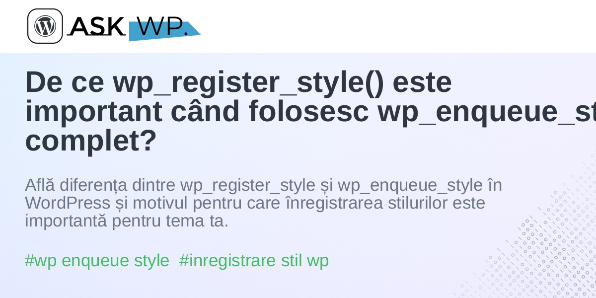 De ce wp_register_style() este important când folosesc wp_enqueue_style() complet?