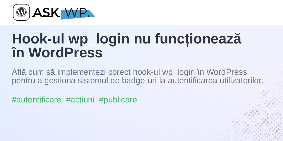 Menționez că am în total 4 acțiuni pentru care vreau să ofer utilizatorilor mai multe badge-uri: publish_post, edit_post, wp_login, comment_post.