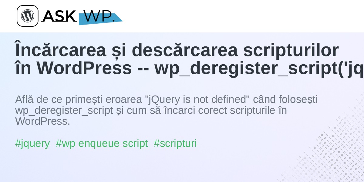 Încărcarea și descărcarea scripturilor în WordPress -- wp_deregister_script('jquery')