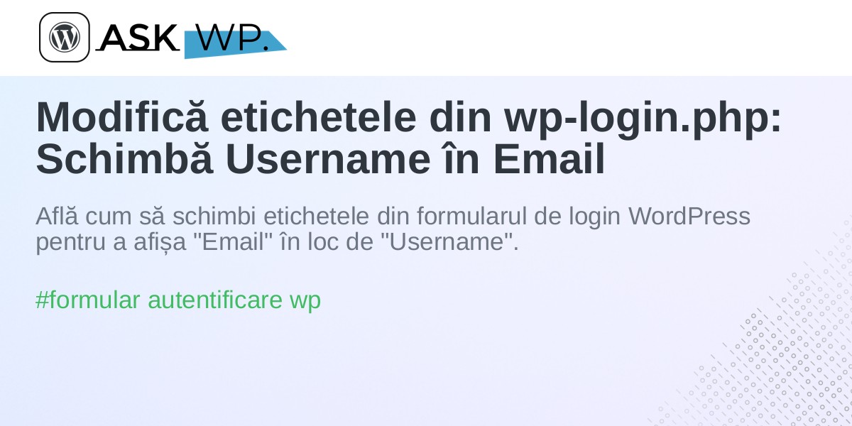 Modifică etichetele din wp-login.php: Schimbă Username în Email