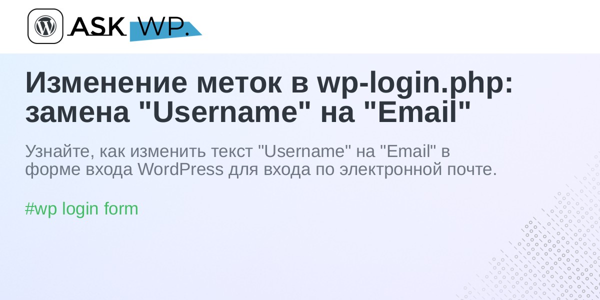 Изменение меток в wp-login.php: замена "Username" на "Email"