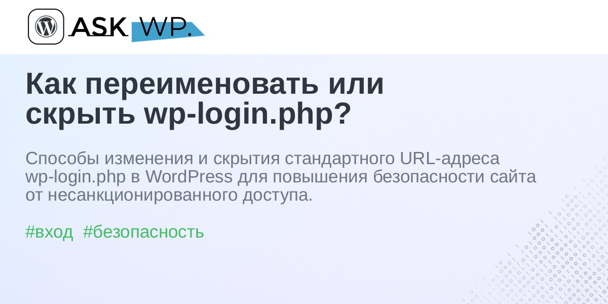 Есть ли способ изменить URL wp-login.php? Кажется небезопасным, что любой, кто когда-либо использовал WordPress, может легко определить, использует ли ваш сайт эту CMS, и получить прямой доступ к странице входа.