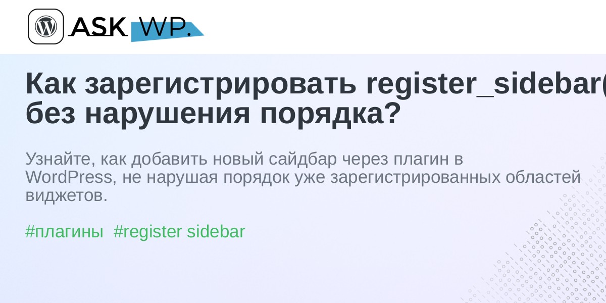 Как зарегистрировать сайдбар в плагине, не нарушая порядок уже существующих зарегистрированных сайдбаров? (Порядок регистрации сайдбаров, а не назначенный ID, определяет данные сайдбара.)