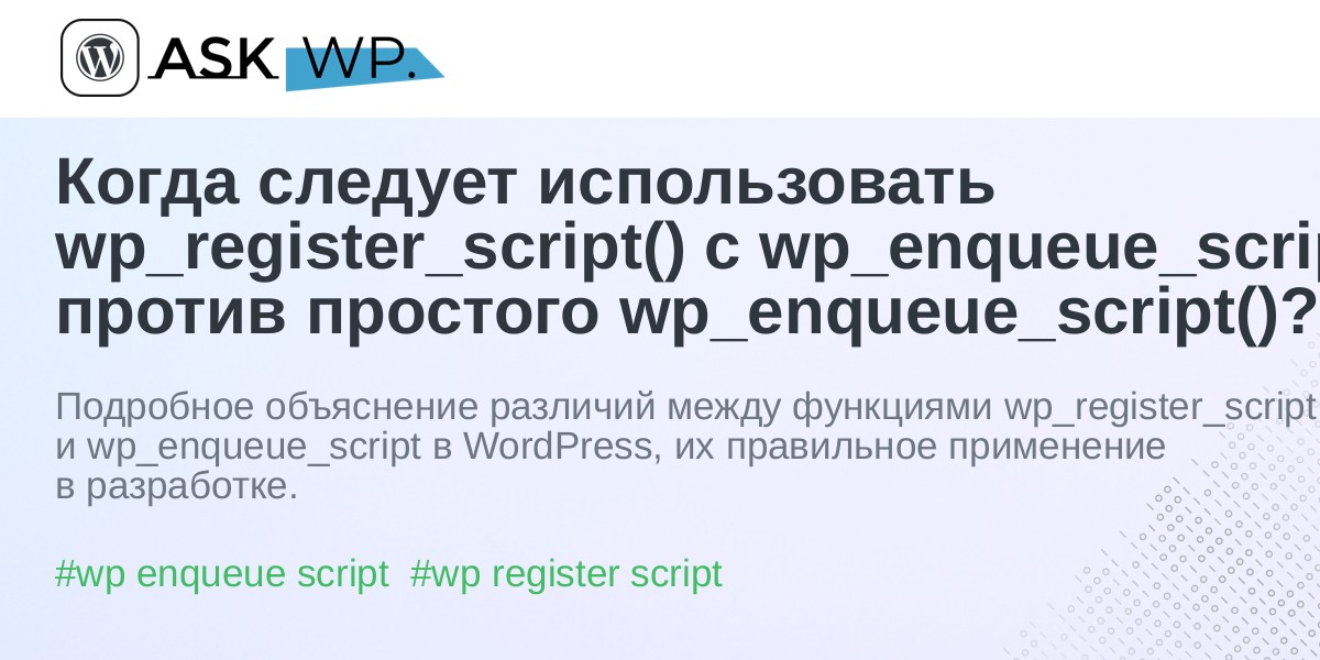 Когда следует использовать wp_register_script() с wp_enqueue_script() против простого wp_enqueue_script()?