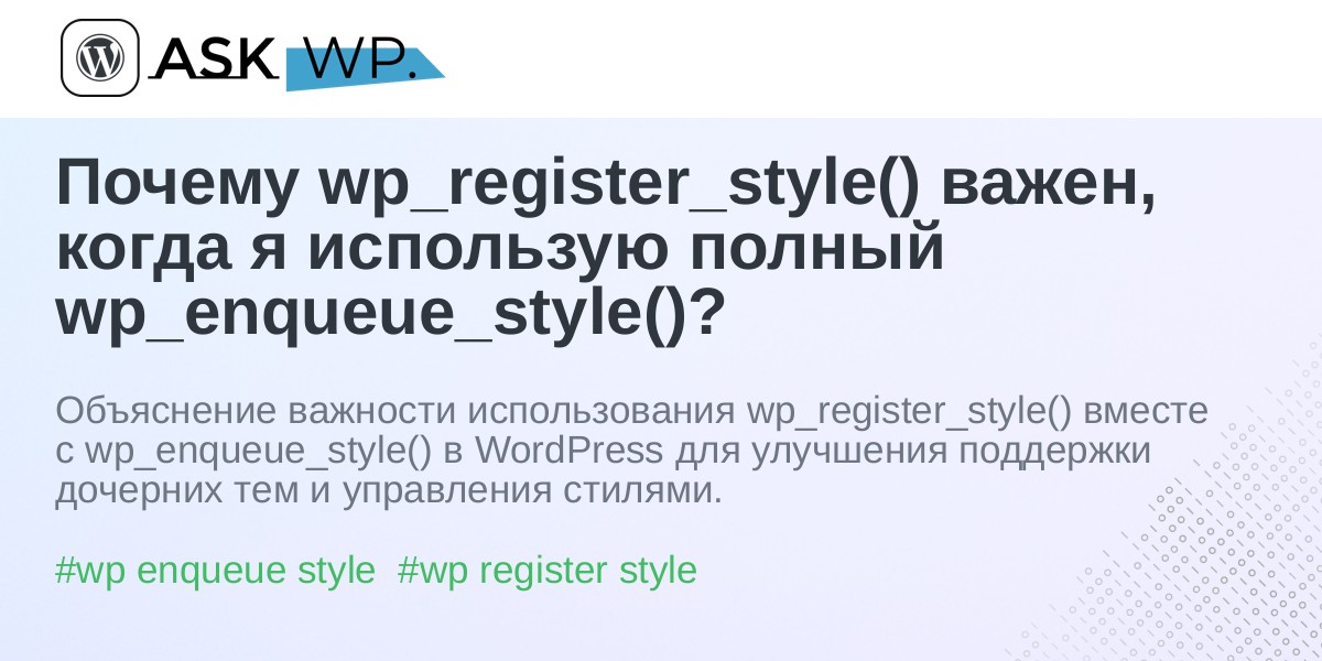 Почему wp_register_style() важен, когда я использую полный wp_enqueue_style()?